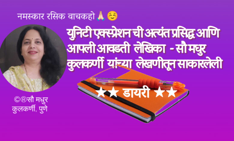 рдЖрдкрд▓реА рдЖрд╡рдбрддреА рд▓реЗрдЦрд┐рдХрд╛ – рд╕реМ рдордзреБрд░ рдХреБрд▓рдХрд░реНрдгреА рдпрд╛рдВрдЪреНрдпрд╛ рд▓реЗрдЦрдгреАрддреВрди рд╕рд╛рдХрд╛рд░рд▓реЗрд▓реА тШЕтШЕрдбрд╛рдпрд░реАтШЕтШЕ