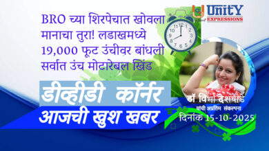 Dr विभा देशपांडे यांचे अत्यंत लोकप्रिय सदर — डीव्हीडी कॉर्नर आजची खुश खबर 15-10-2025 सीमा रस्ते संघटनेने (BRO) सीमावर्ती…